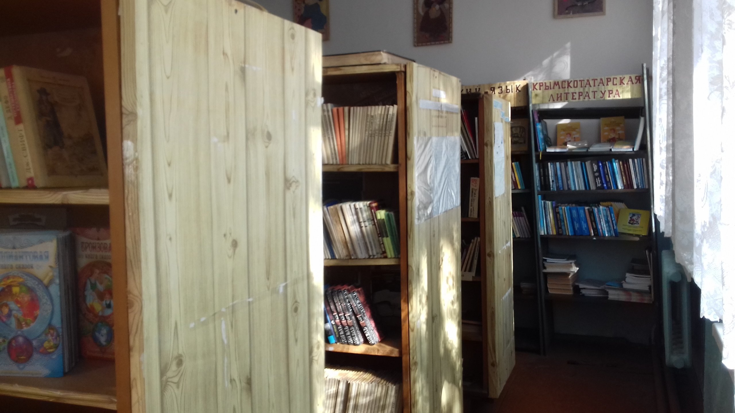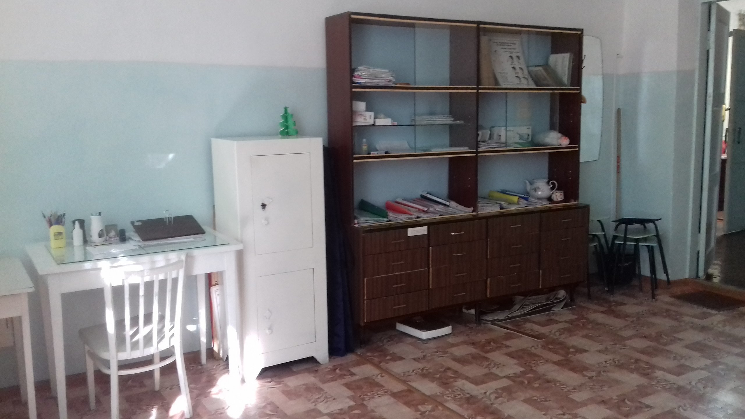 Библиотека | шкаф-2., сервант-1., стеллажи деревянные- 18., стеллажи металлические- 6., стол письменный- 2., стол ауд- 2., стул п/м- 4., табуретки- 2шт., тюль- 10м, полка книжная- 4., огнетушитель ОП№3- 1. |