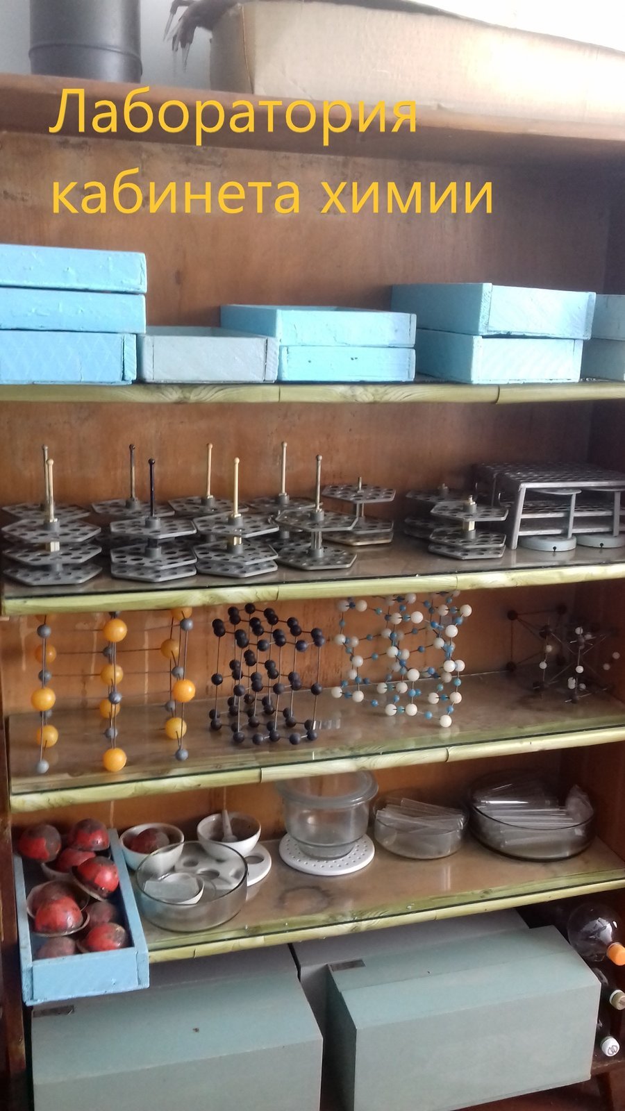 Кабинет химии № 210: | демонстрационный стол -1, учительский стул- 1, доска – 1 шт., столы лабораторные -15, стулья – 25, стенка мебельная – 1 шт., шкаф-вытяжка – 1 шт., стенды и плакаты, отражающие содержание рабочих учебных программ по дисциплине: «Периодическая система химических элементов Д.И. Менделеева». «Ряд напряжений металлов», «Таблица растворимости некоторых веществ в воде» ; модели кристаллических решеток, модель промышленной установки получения ацетилена. |