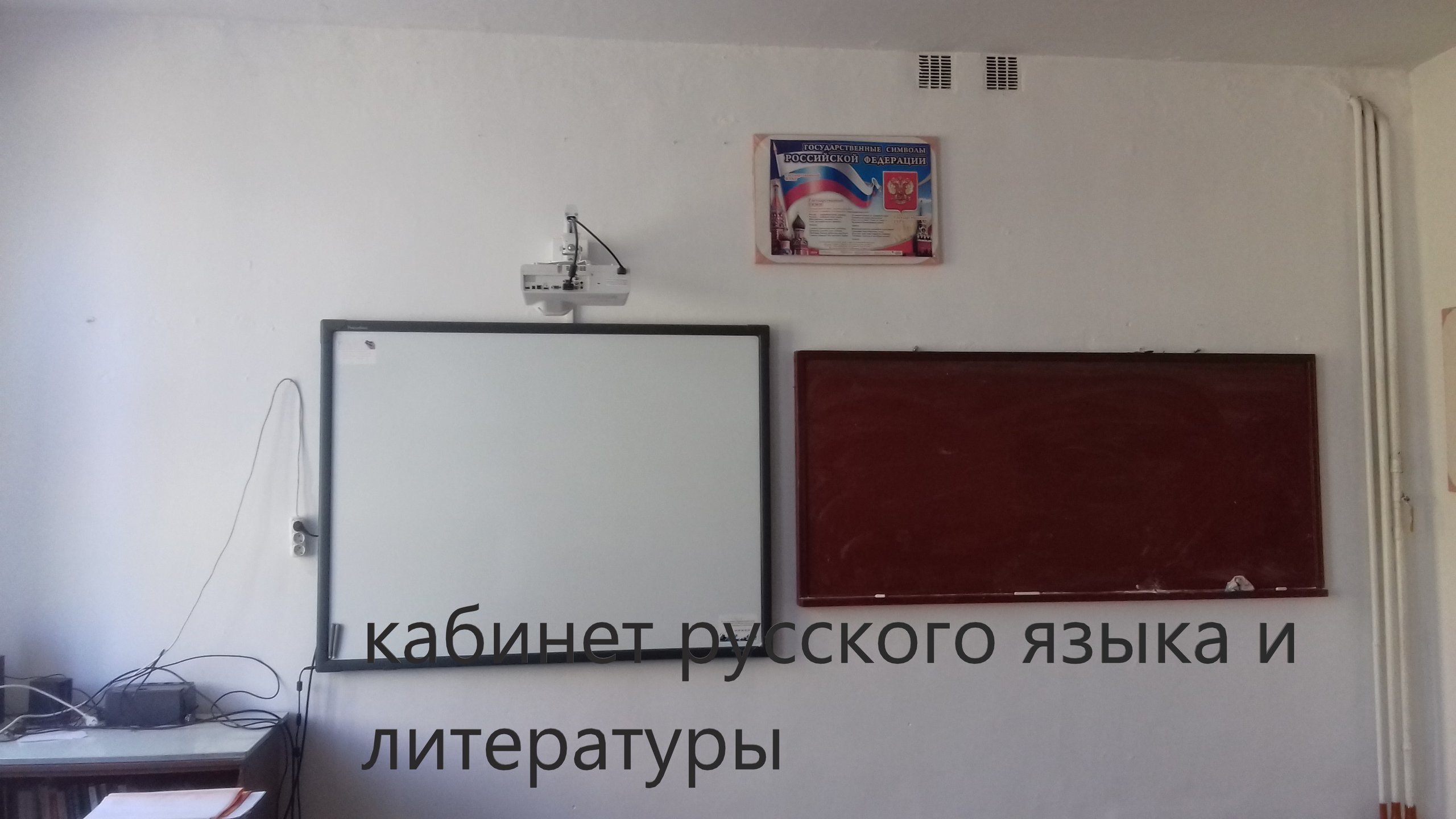 Кабинет русского языка № 216: | учительский стол -1, доска – 1 шт., учительский стул -1, столы школьные - 10, стульев - 18, стенка мебельная – 1 шт. стенды и плакаты, отражающие содержание рабочих учебных программ по дисциплине: портреты писателей. Учебные таблицы «Синтаксис и пунктуация», «Орфография» Карточки для индивидуальных занятий. Стенды. Тесты к контрольным работам по классам. |