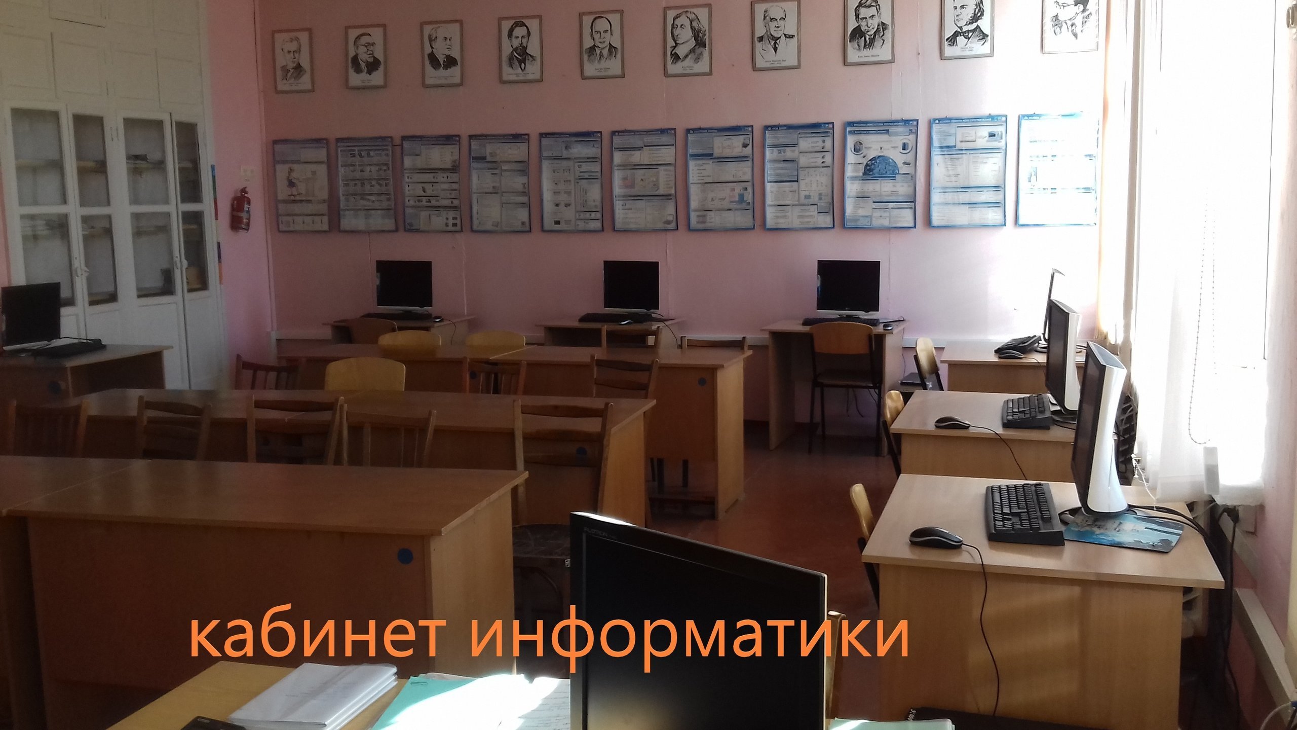 Кабинет информатики и ИКТ № 206: | стол учителя -1, кресло – 1, учительский компьютер – 1, компьютерных столов – 9 шт., ученических компьютеров – 9 шт., доска – 1 шт., столы ученические -6, стулья – 18, стенды и плакаты, отражающие содержание рабочих учебных программ по дисциплине: портреты ученых, «Электронные вычислительные системы» |