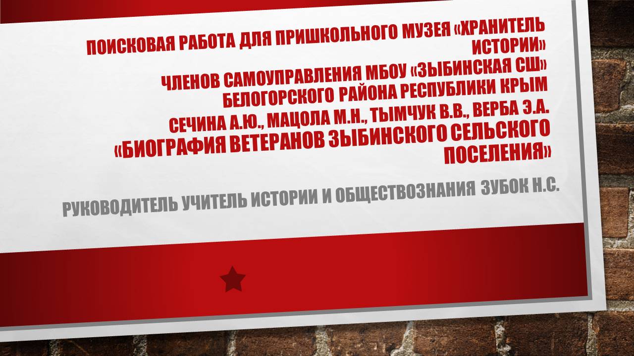 МБОУ «Зыбинская средняя школа» Белогорского района Республики Крым