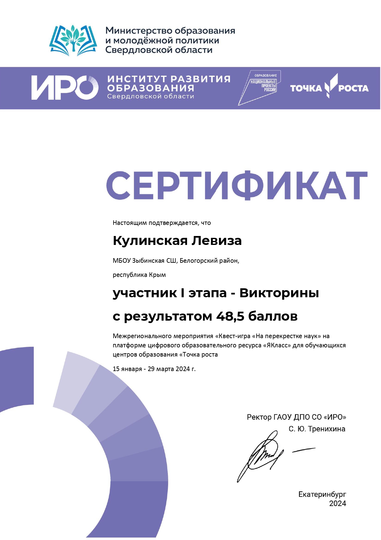 Четверо учениц стали участницами 1 этапа - Викторина на платформе "ЯКласс"